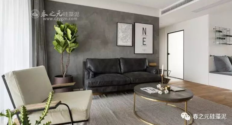 沒有多余花樣,只有肌理清晰的硅藻泥工藝。